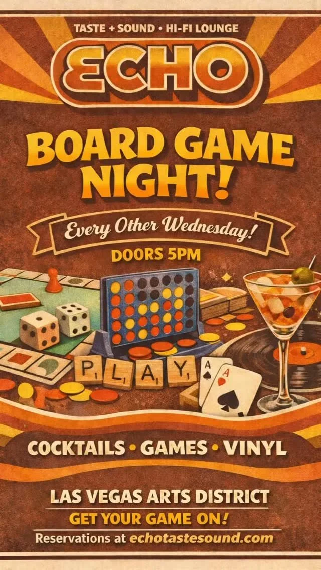 Tucked inside the vibrant Las Vegas Arts District, ECHO is more than just another downtown Las Vegas barβit's a sensory experience. Our hi-fi listening lounge features a state-of-the-art McIntosh sound system, filling the air with carefully curated vinyl records.