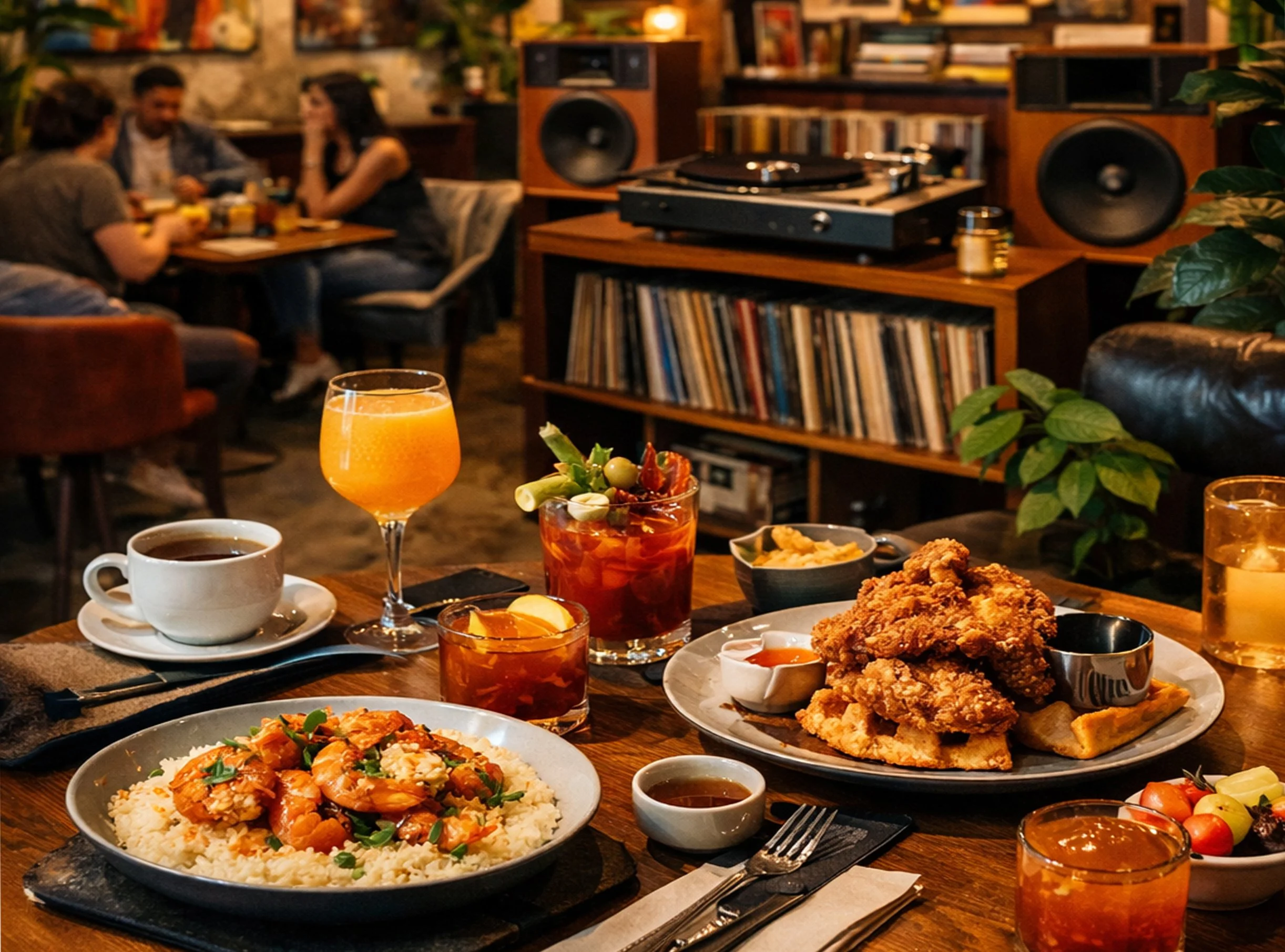 From the moment you walk in, you are treated to a sensory experience—the smell of comfort food, the sight of vibrant greenery and art, and the sound of high-quality audio.