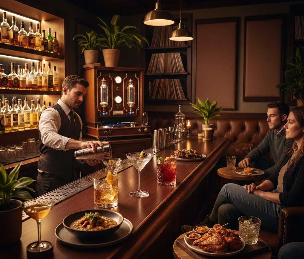 Most bars are either too loud to talk in or too quiet to feel alive. We use a high-fidelity sound system and acoustic treatments to create a warm, immersive audio landscape. Whether we are spinning vintage jazz vinyl or hosting a live neo-soul performance, the music wraps around you without overpowering your conversation.