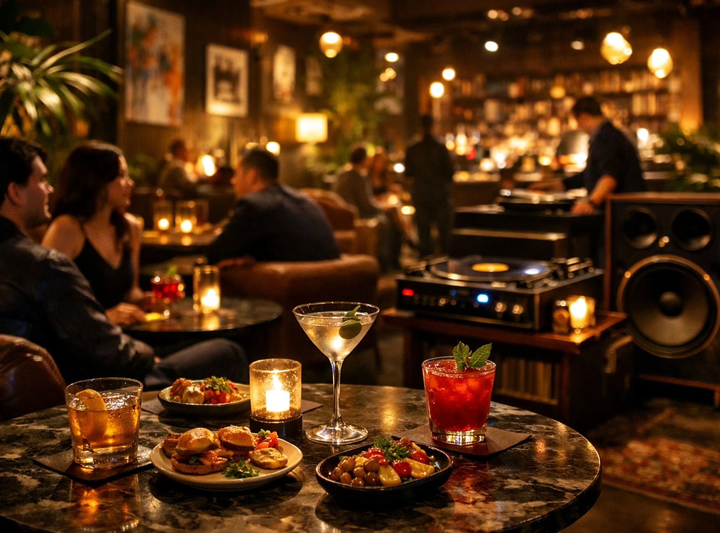 Our evening soundtrack is curated to match the energy of the room. Expect a mix of jazz, soul, funk, and rare grooves spun on vinyl that perfectly complements a cocktail hour.