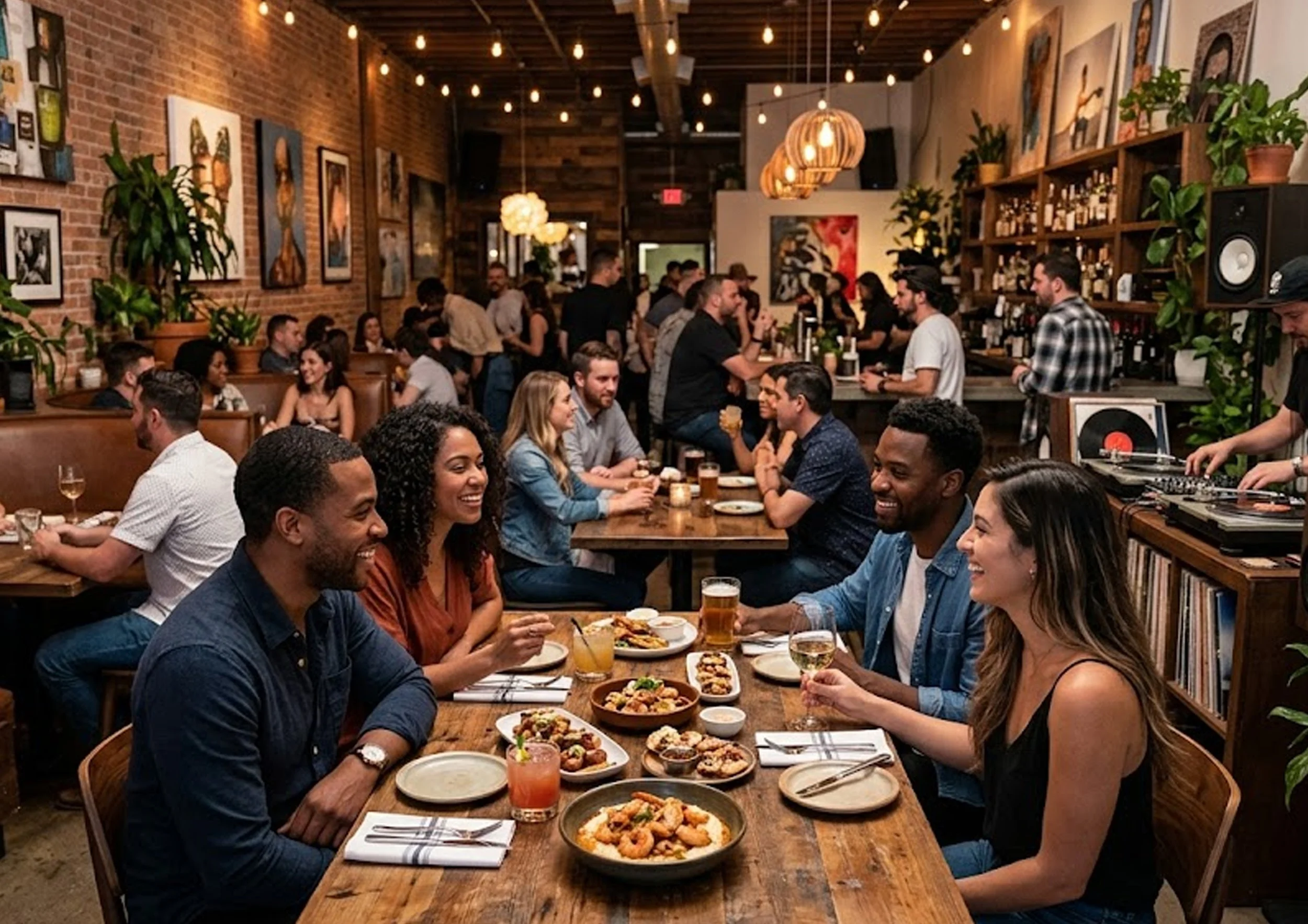Many locals choose the Las Vegas Arts District for immersive dining experiences that combine food, cocktails, and live music. Echo Taste & Sound stands out for its chef-driven brunch, Hi-Fi listening lounge, and community-focused atmosphere.