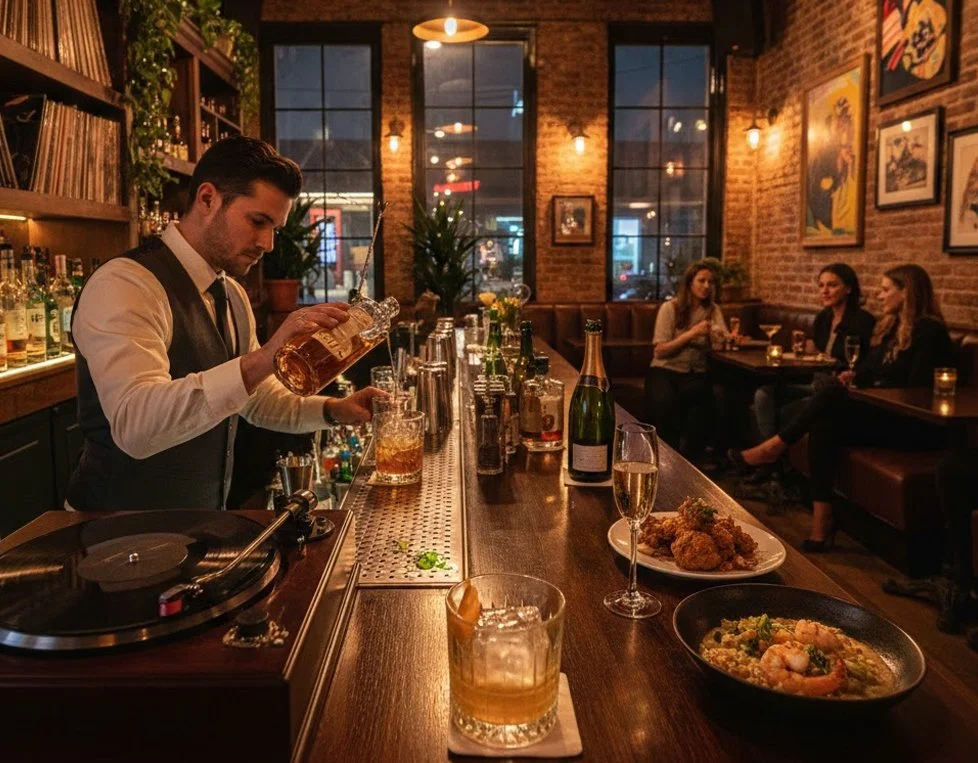 Premium Spirits: We curate our back bar with the same care we curate our vinyl collection. You’ll find small-batch bourbons, artisanal gins, and agave spirits that elevate simple recipes into complex experiences.