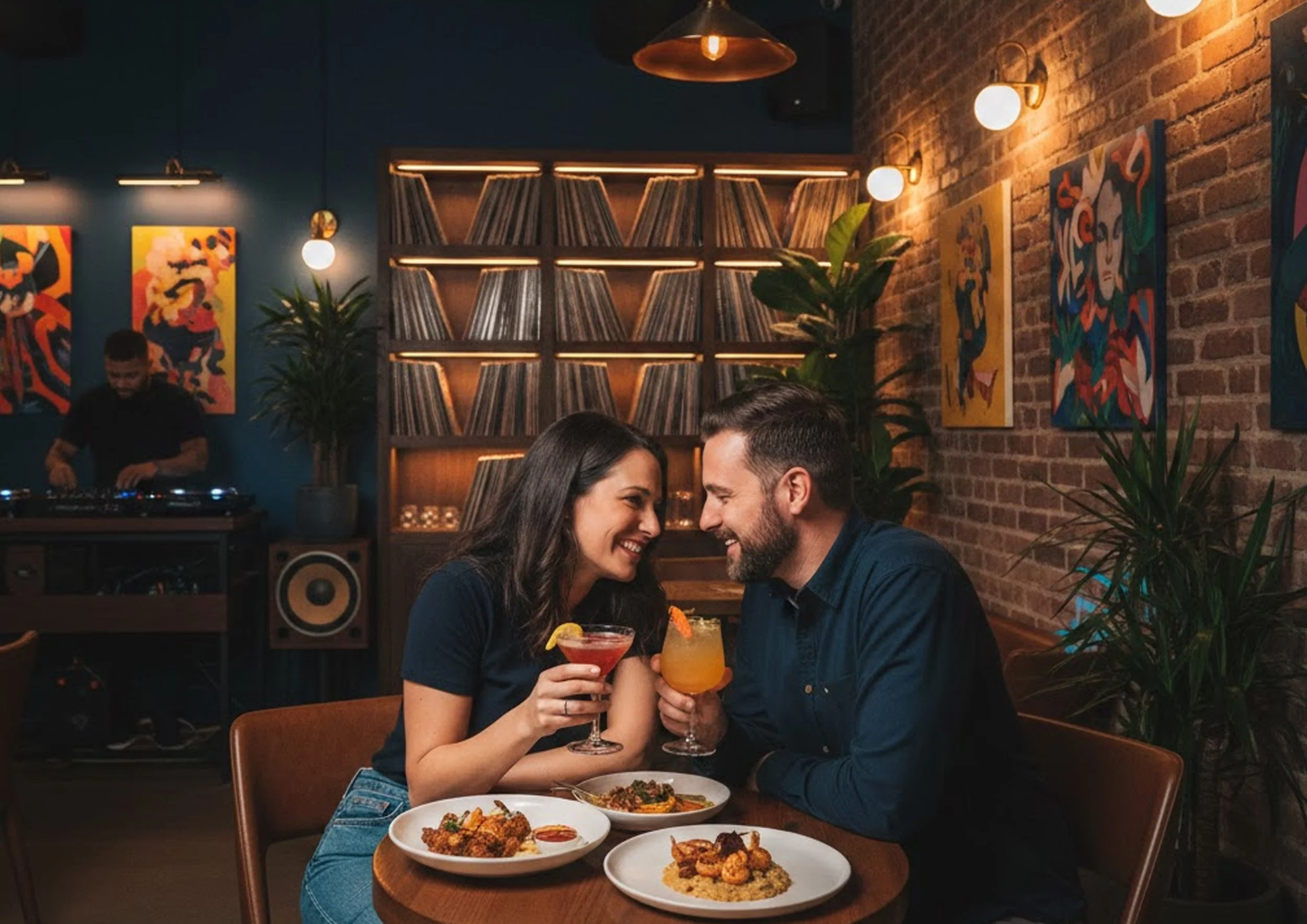 The Hi-Fi listening lounge format prioritizes sound clarity and balance. Music becomes part of the ambiance rather than overpowering it. You can lean in and talk without competing with the room.