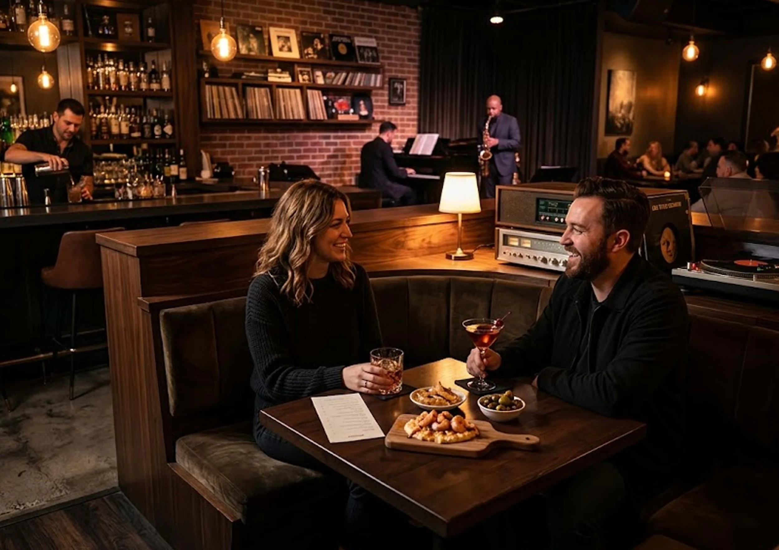 If you’re searching for “hidden cocktail bars near Blue Diamond NV” or “low-key lounges near me,” here’s where desert calm meets craft cocktails, vinyl culture, and live music.