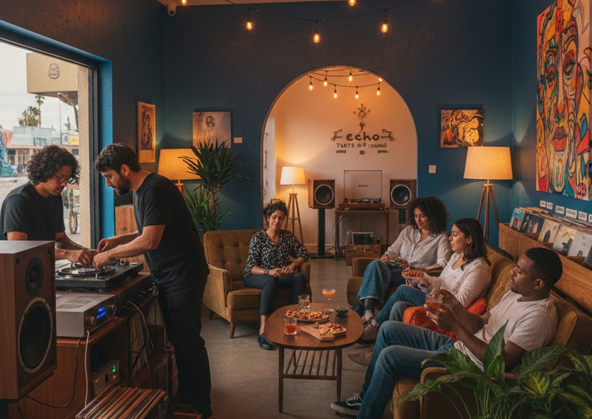 Among the most distinctive listening lounges serving Jean and nearby communities is Echo Taste & Sound — a community-based restaurant and Hi-Fi vinyl listening lounge located in the Las Vegas Arts District.
