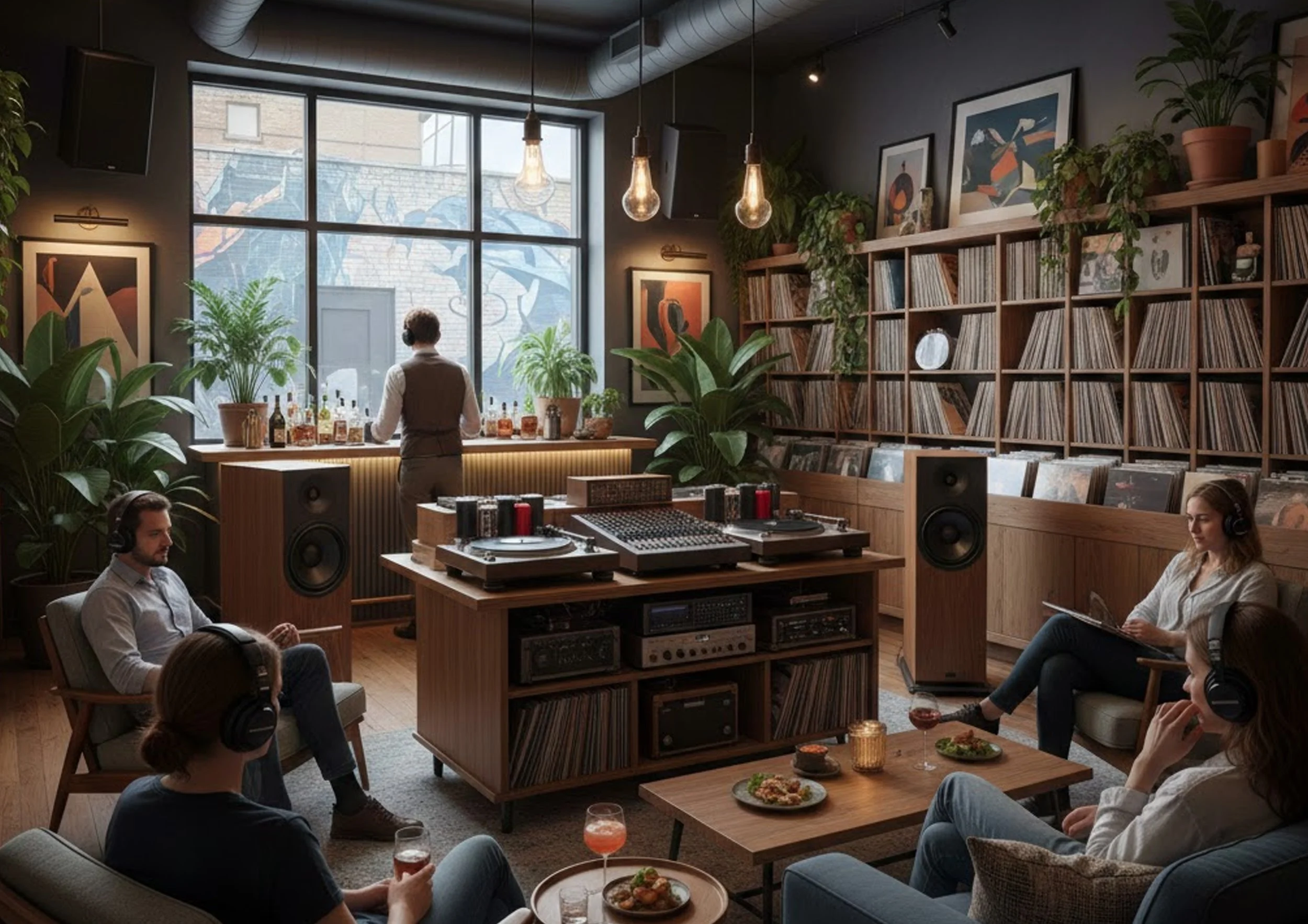 A listening lounge prioritizes sound quality, acoustic balance, and intentional music curation rather than loud, background audio.