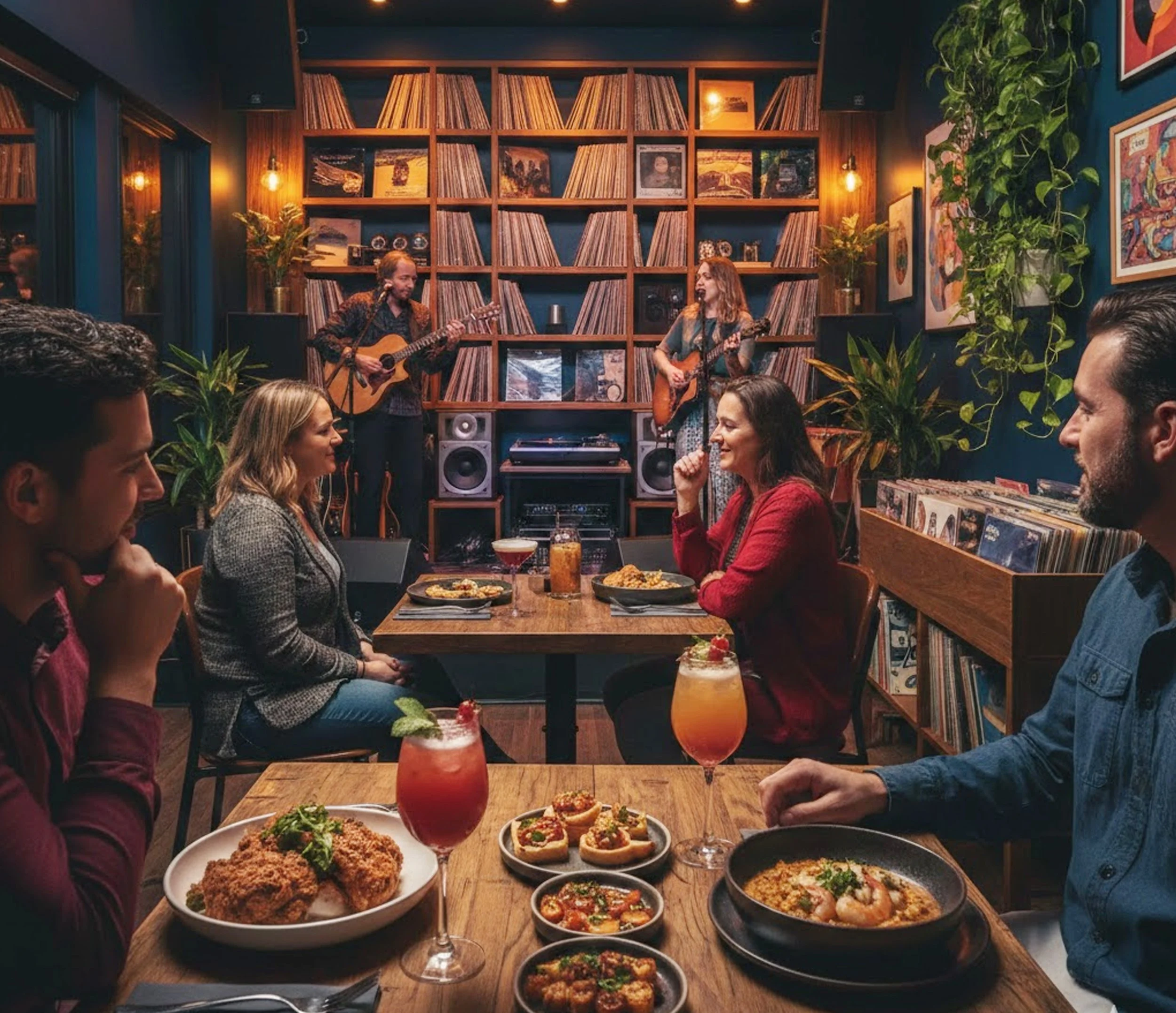 Live music or curated vinyl that enhances — not overwhelms — the room.