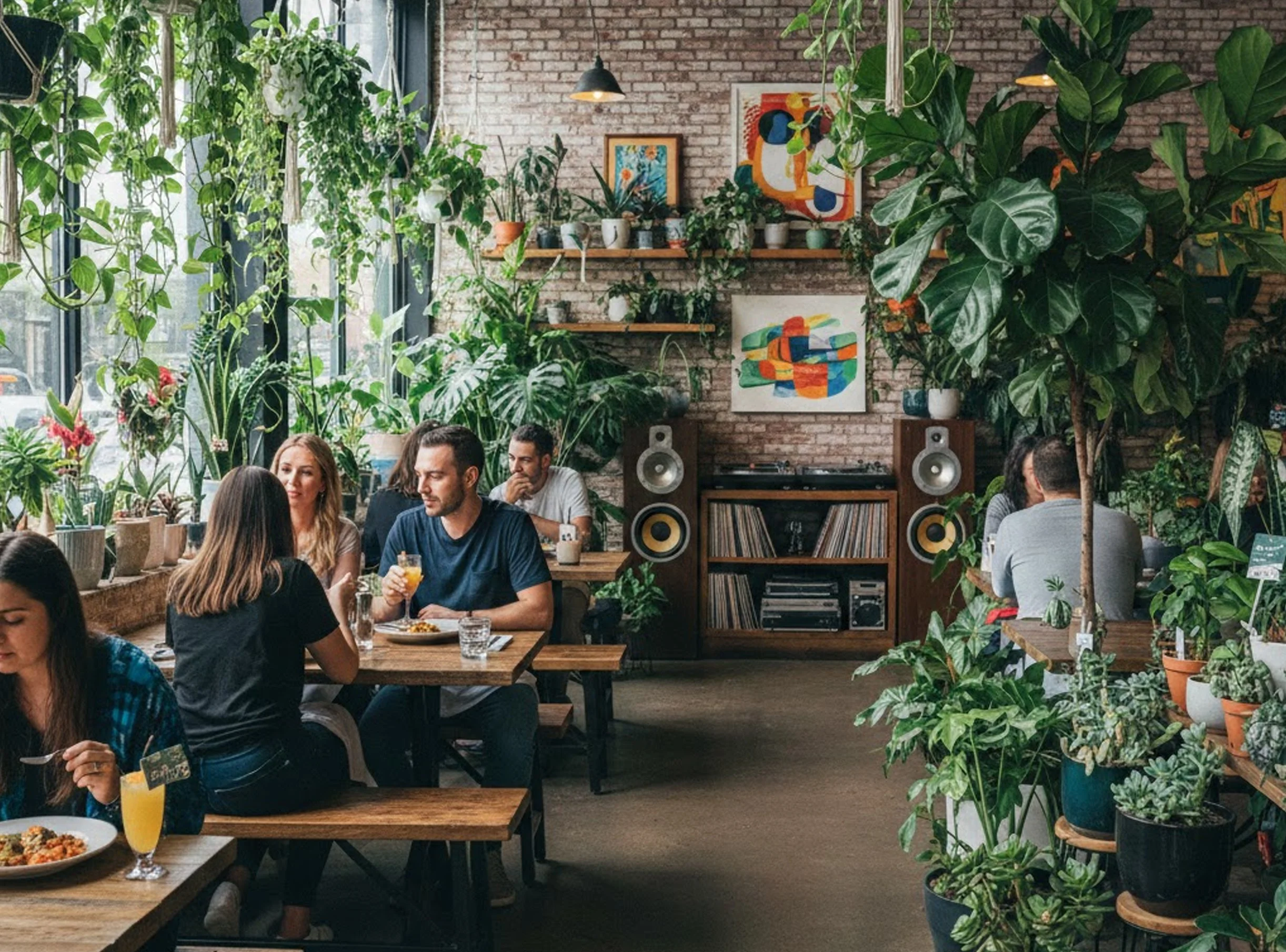 Sound: Plants naturally improve acoustics, helping to absorb echo and create a warmer listening environment for our vinyl playlists and live music.