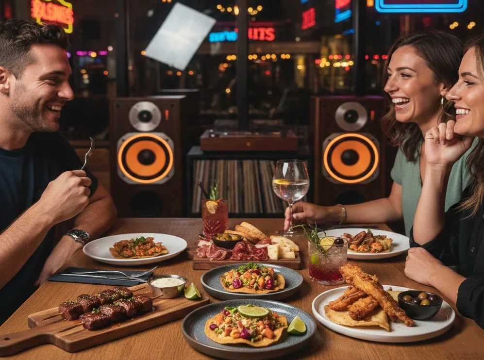 Forget the "food court" fatigue. If you are looking for tapas and small bites near Paradise, head to the district where creativity thrives. Echo Taste & Sound offers a place where you can eat with your hands, drink with style, and listen with your soul.