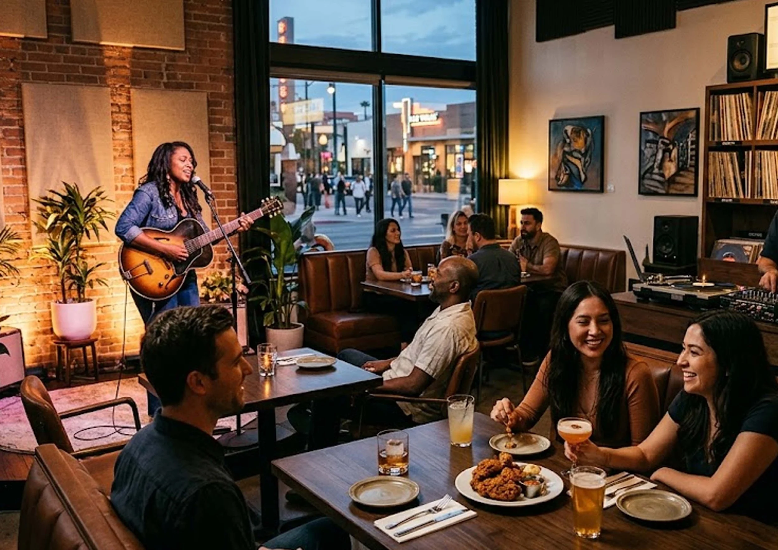 One of the most talked-about live music experiences in the Arts District combines food and sound seamlessly.