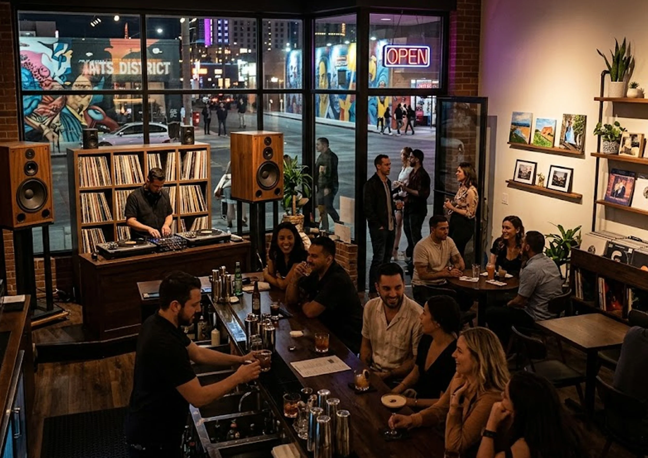 Many locals travel to the Las Vegas Arts District for curated nightlife experiences that blend cocktails, music, and art. Echo Taste & Sound stands out for its Hi-Fi listening lounge and community-driven atmosphere.