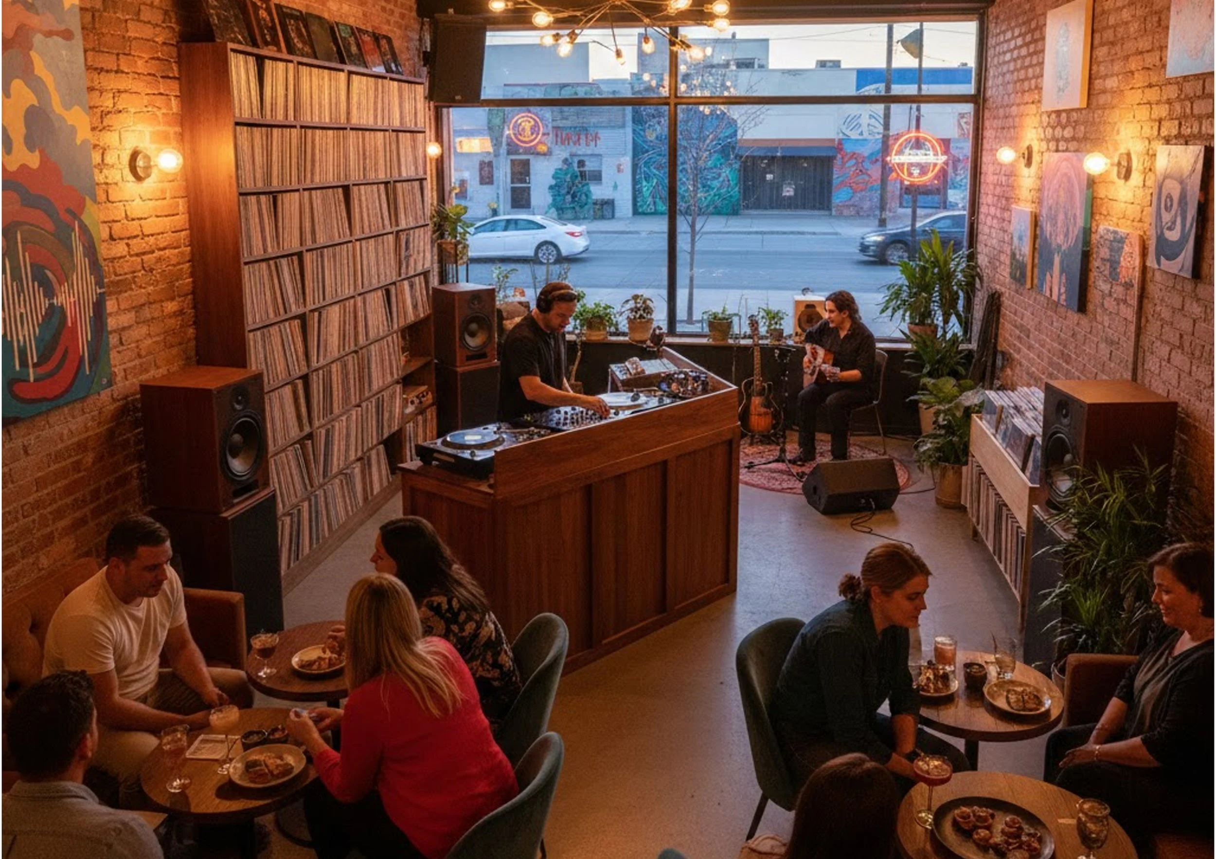 A vinyl set begins, filling the room with warmth and texture.