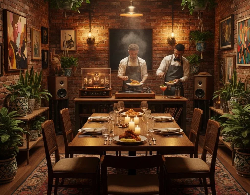 Curated Sound: As a premier vinyl listening lounge, music is our heartbeat. Your private dinner can be accompanied by a specific playlist or a selection from our curated vinyl shop, played through a high-end audio system that allows for conversation while enveloping you in sound.