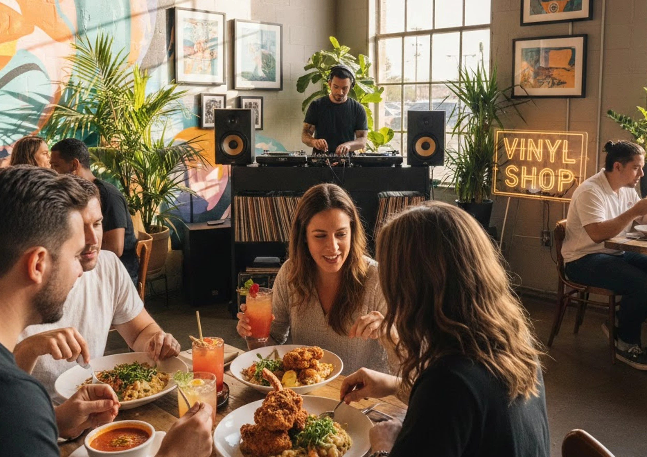 For those searching for weekend brunch near Jean with music, the Las Vegas Arts District has become a go-to destination for food lovers, vinyl enthusiasts, and creatives alike.