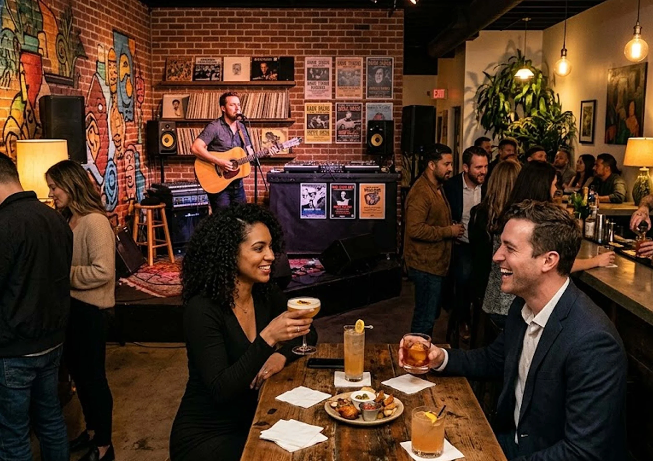 Many locals head to the Las Vegas Arts District for a more curated experience. Echo Taste & Sound offers vinyl DJ sets, live performances, and thoughtfully crafted cocktails just minutes away.