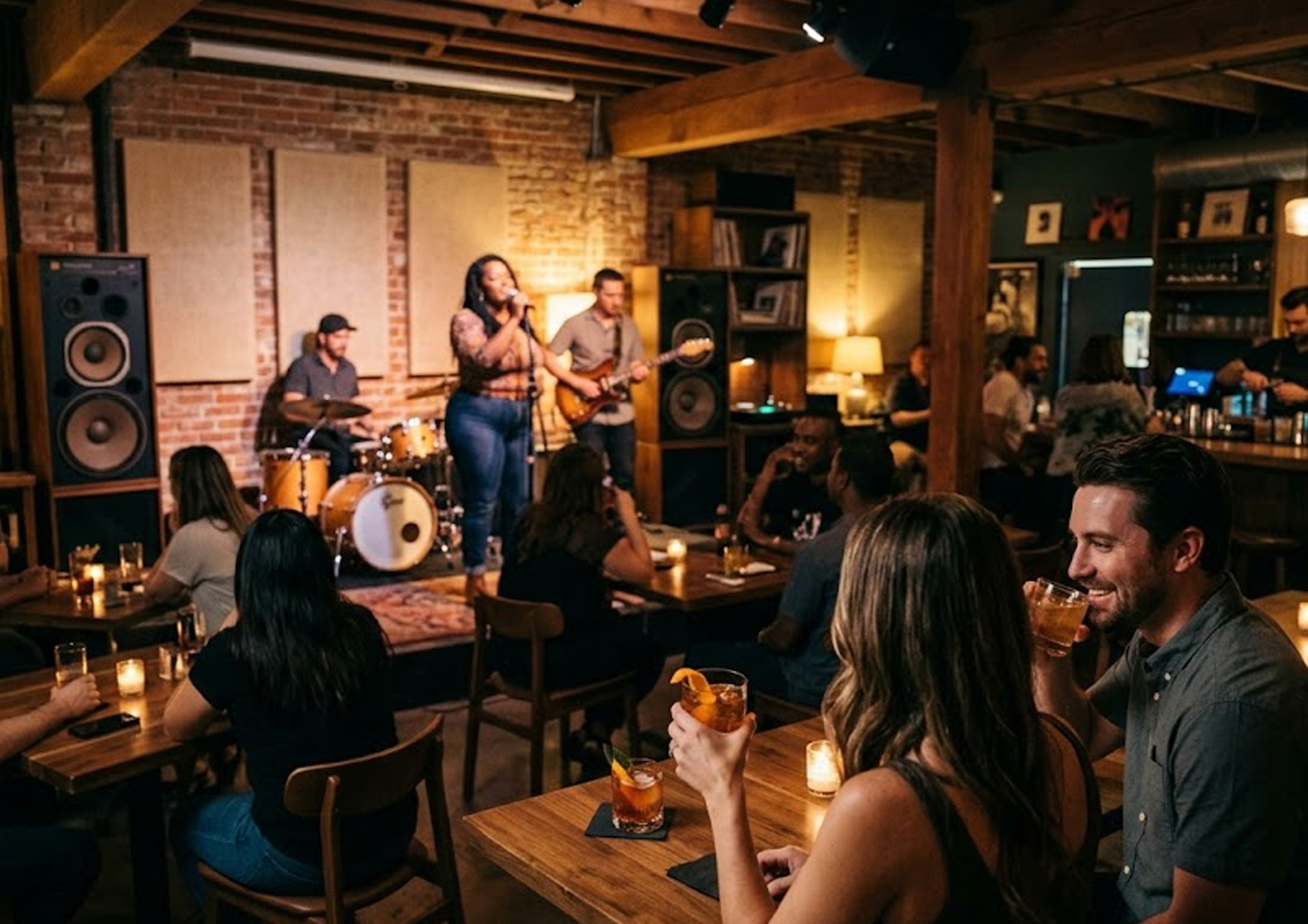 You might begin with small plates and a classic cocktail as vinyl sets the mood. As live musicians or DJs take the stage, the energy shifts while maintaining the intimate feel that defines the venue. Guests often explore the art displays or browse vinyl between sets, making the evening interactive and memorable.
