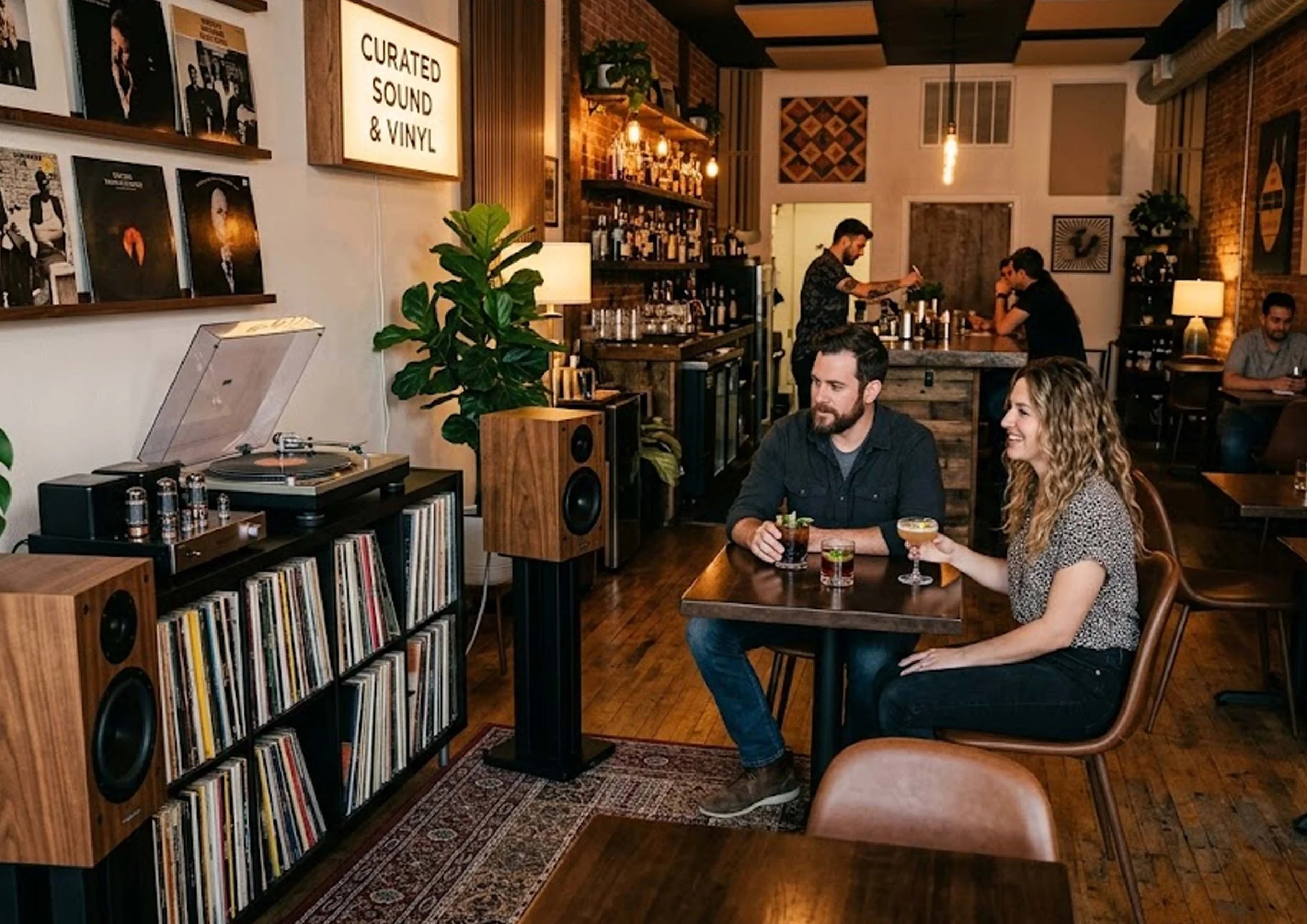 Vinyl spins in the background, creating a relaxed but refined ambiance.