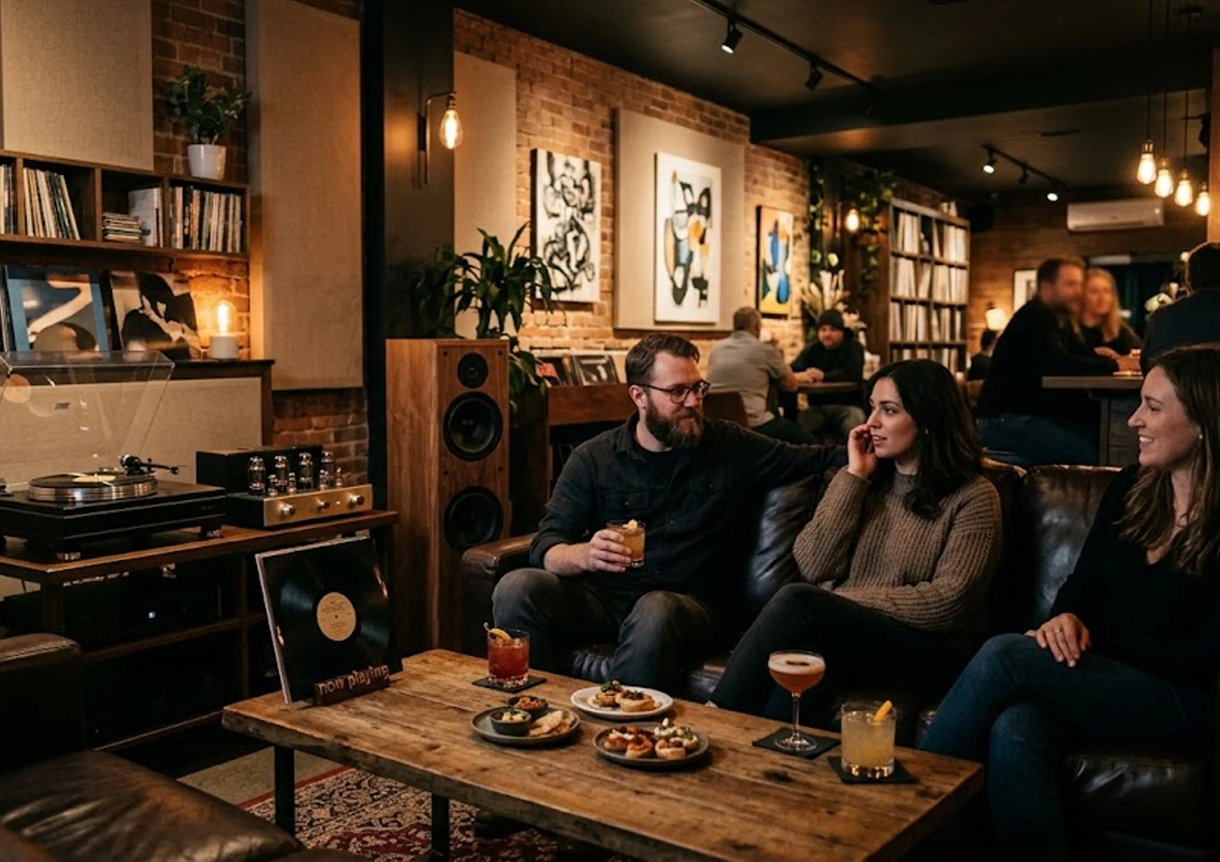 Evening transitions into a vinyl listening lounge and cocktail bar